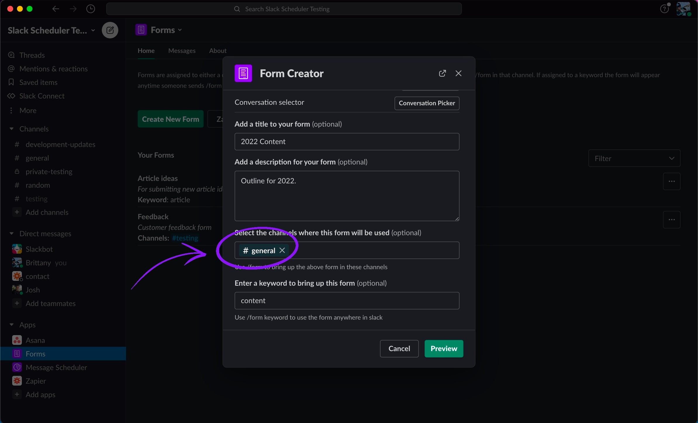 6. Assign your form to a channel or keyword